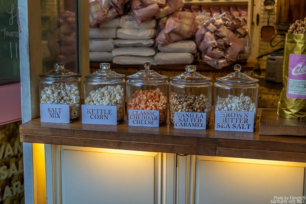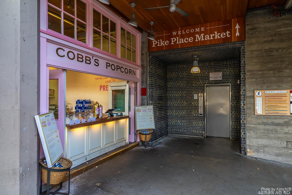 다시 왔던길로 돌아가도 되지만, 마켓플레이스 메인 스퀘어쪽으로 가려면, 계단을 조금 올라가서 엘리베이터를 타면 간단하다. 그 앞에는 COBB's POPCORN이라는 팝콘가게가 있었는데, 팝콘 한봉지에 $20 가까이 하는 것을 보고는 차마 살수가 없었다. 팝콘이 너무 비싸잖아 ㅠㅠ..