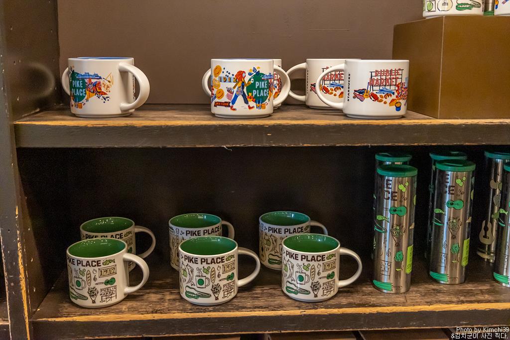 대략적으로 이정도의 줄? 어차피 앉을곳도 없고, 음료나 굿즈를 사고 나오는 것이 전부이기 때문에 실제 대기시간은 15분 정도였다. 스타벅스가 뭐라고 아직도 줄서서 들어가냐고 하지만, 그래도 시애틀에 왔다면 이 1호점과 스타벅스 로스터리는 한 번쯤 가봐야 하는 곳이니까.