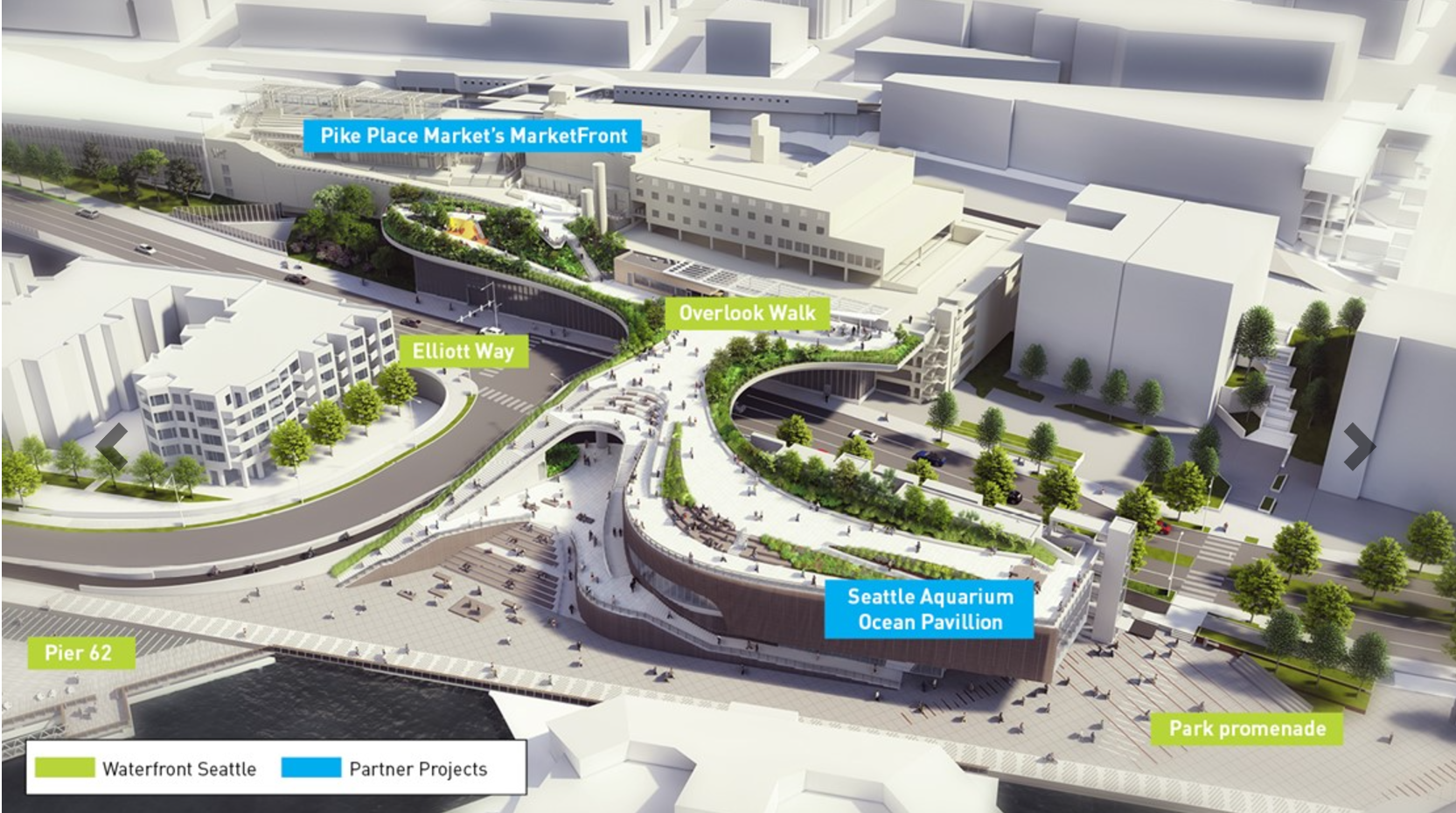 시애틀 오버룩 워크는 대략 이런 식으로 파켓과 워터프론트쪽을 연결한다. 19년도에 왔을 때도 공사중이었는데, 이제서야 슬슬 마무리되고 있다는 느낌.