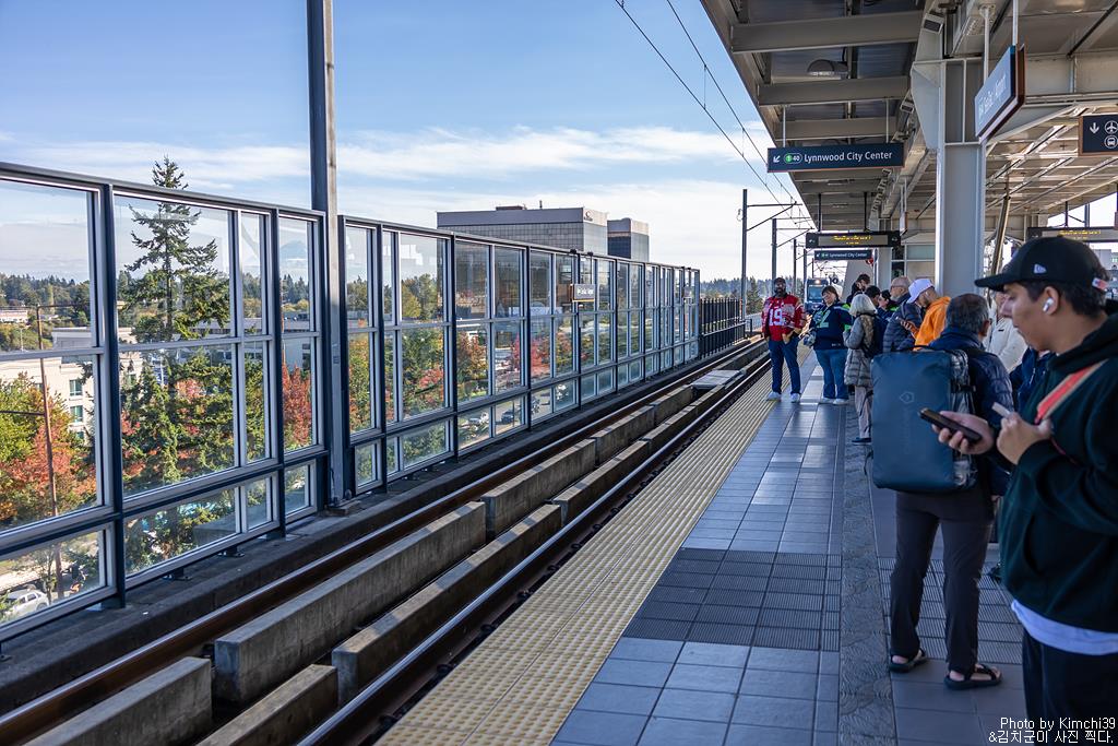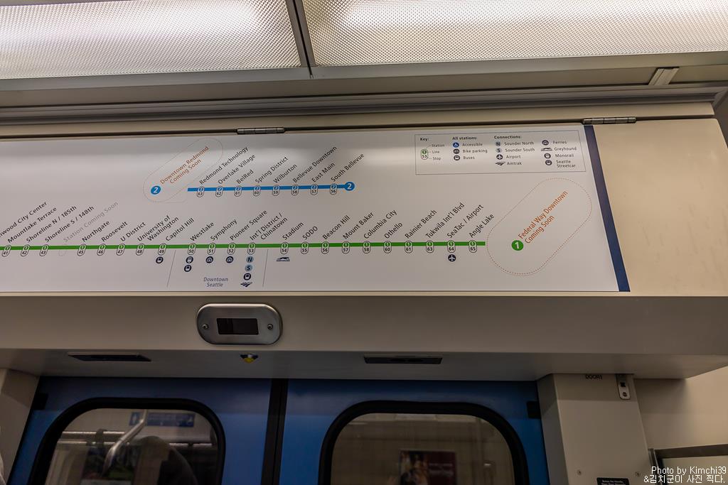 시애틀 링크 라이트레일 정류장. 정류장명은 SeaTac Airport. 그리고, 내릴 때는 방문 목적지에 따라서 심포니(Symphony)나 웨스트레이크(Westlake)에서 많이 내린다. 공항에서 시내까지는 라이트레일로 대략 40분 정도 소요된다.