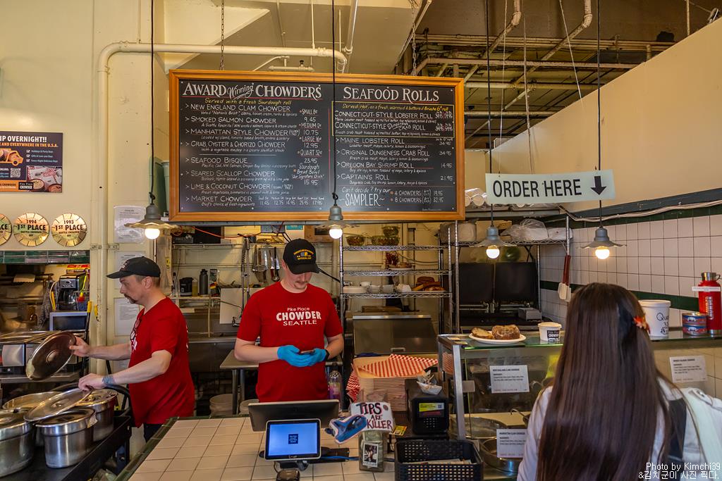 비행기에서 죽을 먹고, 점심을 어설프게 빵만 먹었더니 배가 고파서 시애틀의 유명한 파이크 플레이스 차우더(Pike Place Chowder)로 향했다. 평소에는 줄이 길어서 몇번이나 먹어볼 기회를 놓쳤었는데, 이번에는 평일의 애매한 시간이어서 그런지 줄도 길지 않아서 먹어볼 수 있었다.