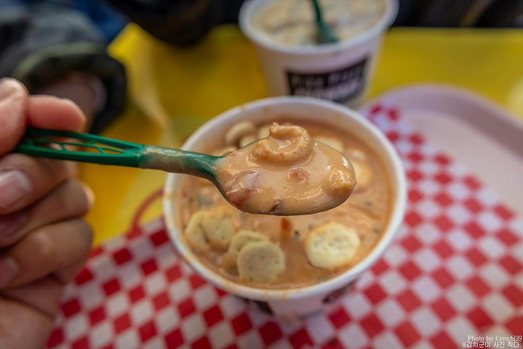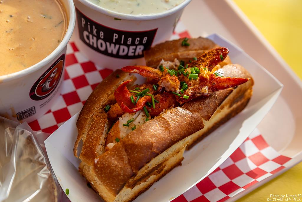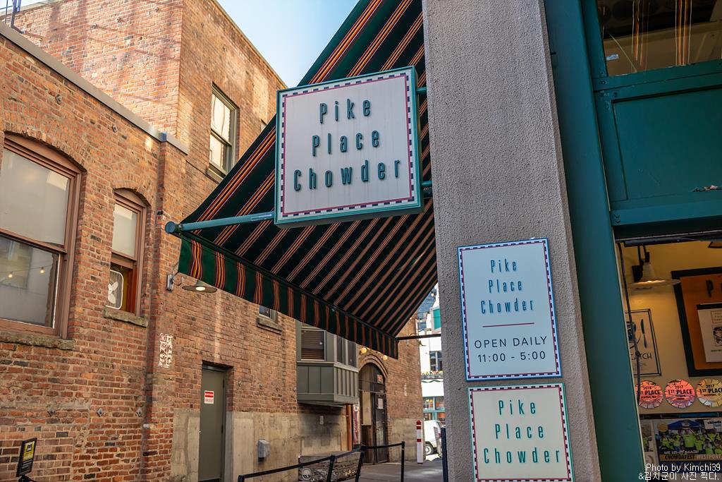 비행기에서 죽을 먹고, 점심을 어설프게 빵만 먹었더니 배가 고파서 시애틀의 유명한 파이크 플레이스 차우더(Pike Place Chowder)로 향했다. 평소에는 줄이 길어서 몇번이나 먹어볼 기회를 놓쳤었는데, 이번에는 평일의 애매한 시간이어서 그런지 줄도 길지 않아서 먹어볼 수 있었다.