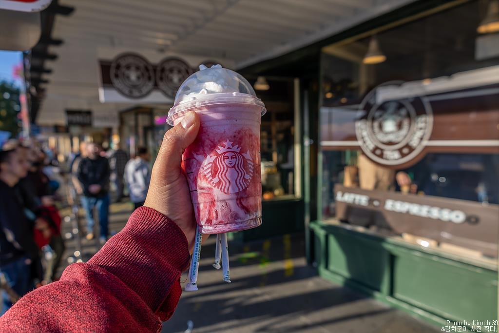 차우더를 먹고 나서 다시 퍼블릭 마켓으로 나왔다. 다음 목적지는 스타벅스 1호점. 이전에도 지나다니다가 한 번 들어가봐야지 했었는데, 줄이 길어서 갈까말까 하다 말았던 적이 여러번이었다. 그렇지만 이번에는 성수기가 아닌 평일 오후였기 때문에 혹시나 하고 가봤는데, 아니나 다를까.. 줄이 생각만큼 길지 않았다.
