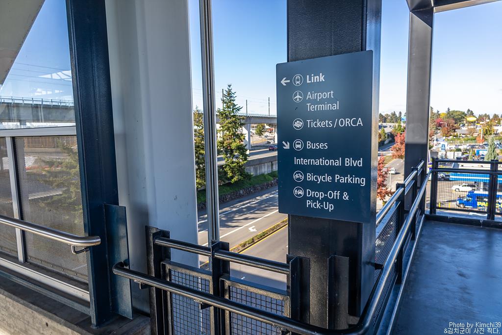 시애틀 링크 라이트레일 정류장. 정류장명은 SeaTac Airport. 그리고, 내릴 때는 방문 목적지에 따라서 심포니(Symphony)나 웨스트레이크(Westlake)에서 많이 내린다. 공항에서 시내까지는 라이트레일로 대략 40분 정도 소요된다.