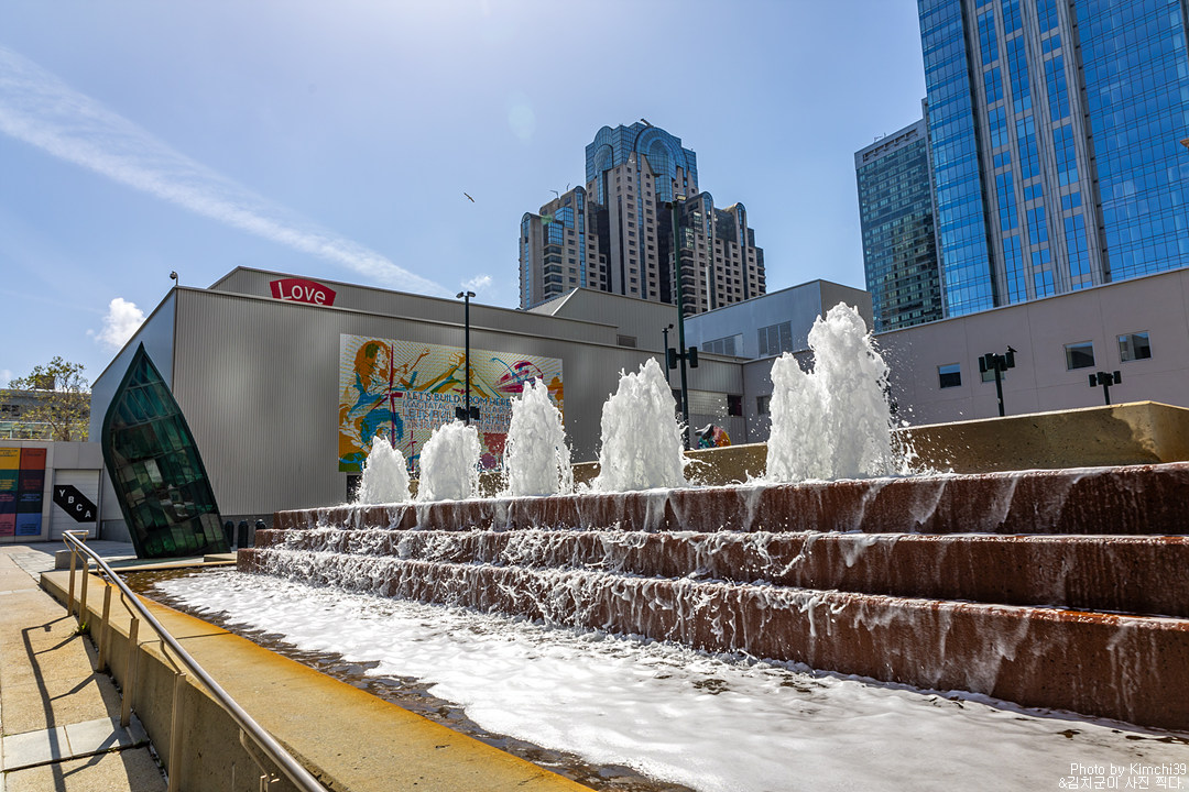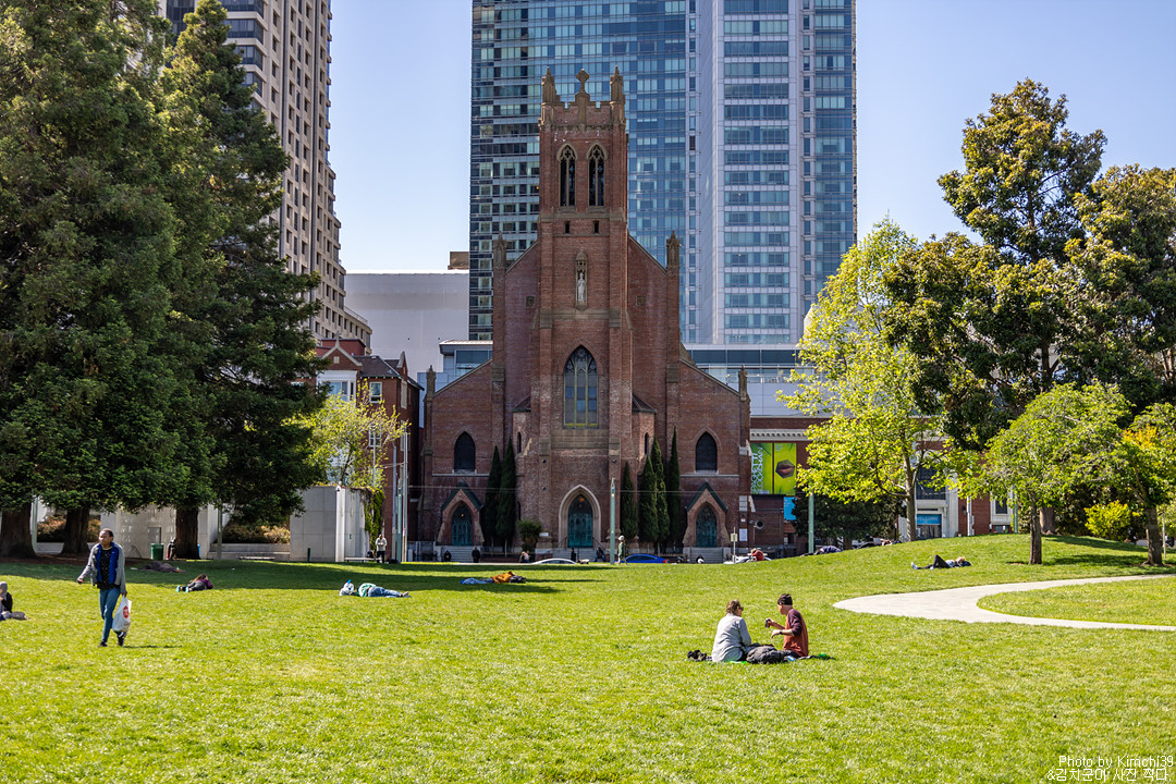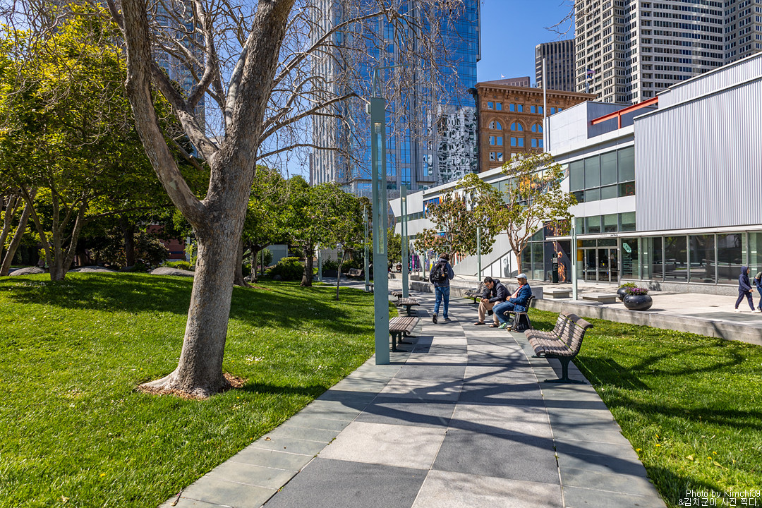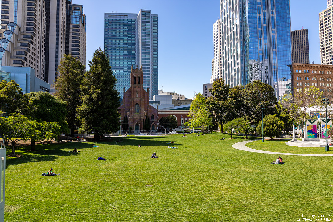 그렇게 모마에서 잠시 시간을 보낸 후, 나와서 건너편의 예르바 부에나 가든스(Yerba Buena Gardens)를 걸었다. 평일 오후의 조용한 가든이었지만, 그래도 잔디 곳곳에 누워서 휴식을 취하는 사람들이 많았다.