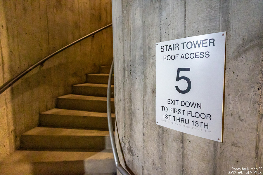 빙글빙글빙글 올라서, 13층 까지 가면 된다. 내려오는 사람들도 있기는 하지만 그래도 폭이 많이 좁지는 않기 때문에 크게 불편하지는 않다. 유럽의 성당 전망대 같은 경우에는 진짜 벽에 바짝 붙어서 비켜줘야 하는 경우가 많았는데, 그래도 이정도면 양반이 아닐까 싶다. 아, 물론 엘리베이터를 타는게 최상인데, 하필 이 날 엘리베이터 고장이라니 ㅠㅠ
