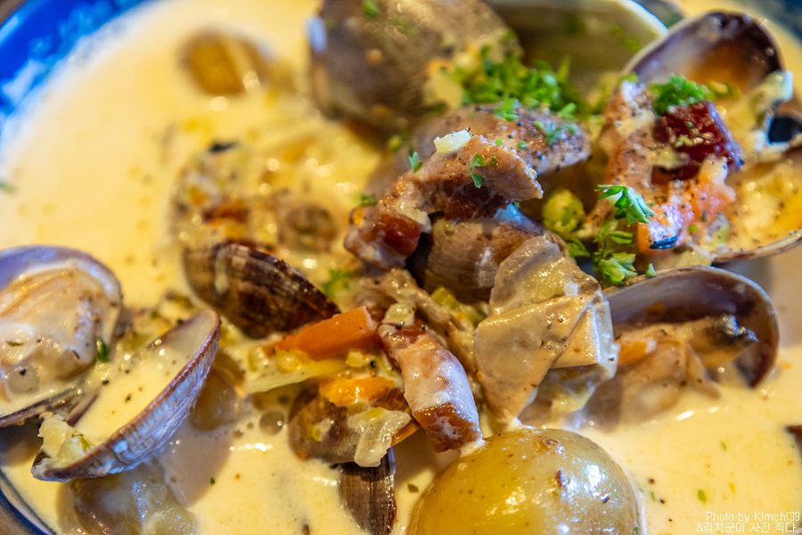 그리고 간단하게 빵과 클램차우더를 먹었다. 클램차우더는 조금 걸죽한 맛을 기대했는데, 조금 묽은 느낌의 클램차우더였다. 맛이 나쁘지는 않았지만, 기대만큼 그렇게 맛있다고 느껴질 정도는 아니었다. 워낙 클램차우더를 좋아하는 편인데, 역시 조금 걸죽한 스타일이 더 입에 맞는 듯 싶다. 그래도 뭐, 가볍게 먹기엔 나쁘지 않은 수준. 가격은 가볍지 않았지만.