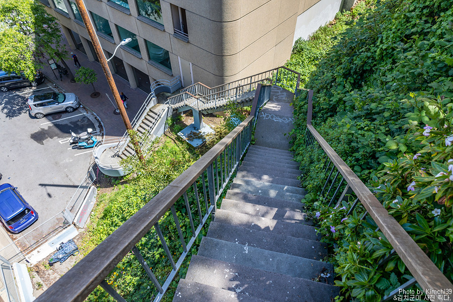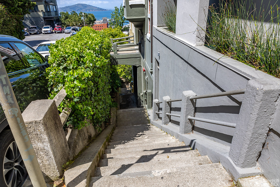 마지막 계단들. 이미 코잇타워에서 풍경을 보고 내려오는 것이기 때문에, 딱히 우와! 하는 풍경은 아니었지만, 그래도 나름 상쾌하게 걸을 수 있었다. 왜 구글 지도 평점이 좋은지는 잘 이해가 안가긴 했지만.