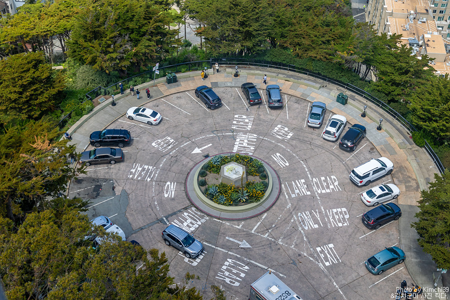 코잇타워에서 멀리 보는 풍경도 좋지만, 코잇타워 아래의 텔레그래프힐 풍경도 생각보다 재미있따. 곳곳에 높은 경사도가 있는 언덕이 있는 풍경, 코잇타워의 주차장 등도 나름 재미있는 사진 포인트가 되기 때문이다. 그렇게 코잇타워에서 여러방향을 돌면서 사진을 찍고, 다시 1층으로 내려왔다.