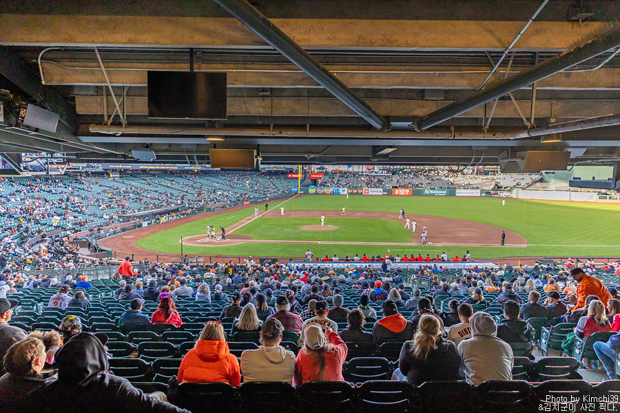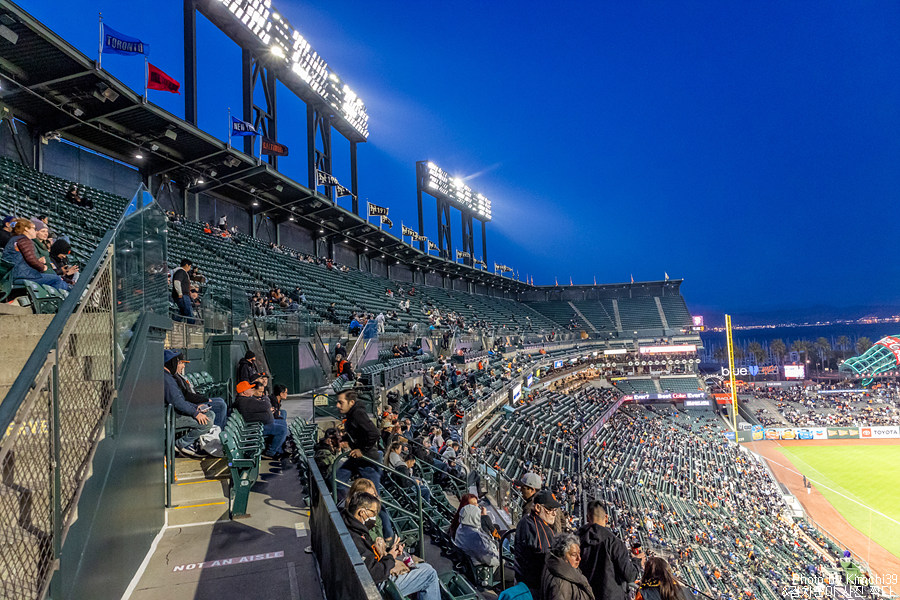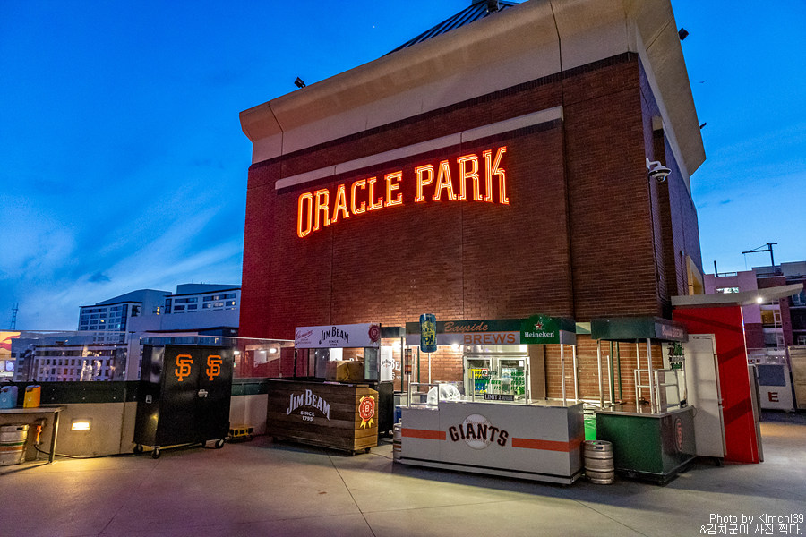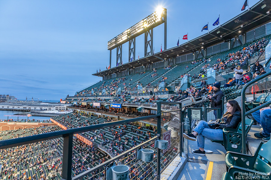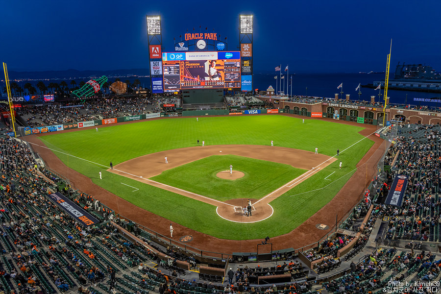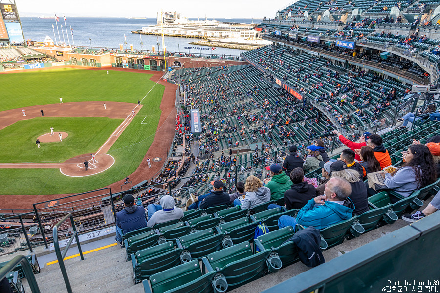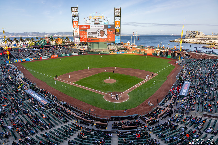 오라클파크 3층에서 보이는 풍경. 바로 오른쪽에 바다가 펼쳐지는 꽤 멋진 느낌의 구장이다. 사실, 경기보다 이 풍경을 보고 싶어서 오라클파크에 왔다고 해도 과언이 아니었다. 샌프란시스코 자이언츠 경기는 덤.. 근데, 1회부터 두드려 맞더니 무려 5점이나 실점을 했다. 아, 오늘 샌프란시스코 패배각이 보인다.