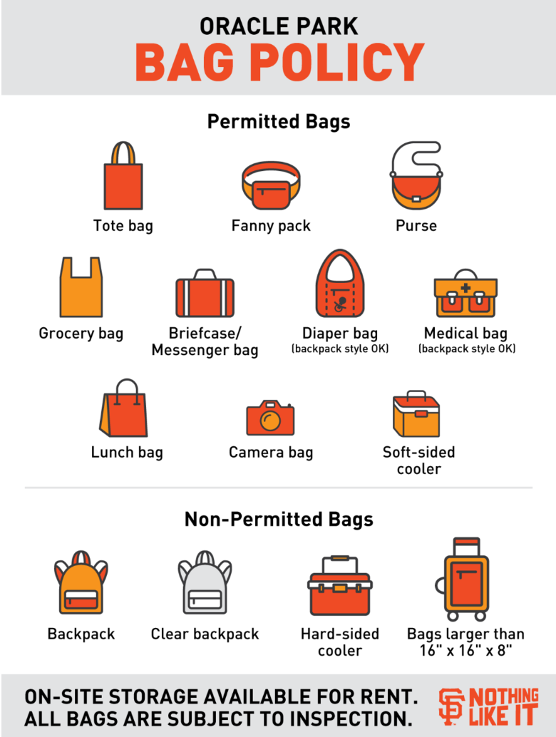 참고로 오라클 파크는 작은 가방과 쇼핑백류는 웬만해서는 다 통과가 가능하다. 다만 캐리어나 백팩들은 안되기 때문에 그런것들만 주의하면 된다.
