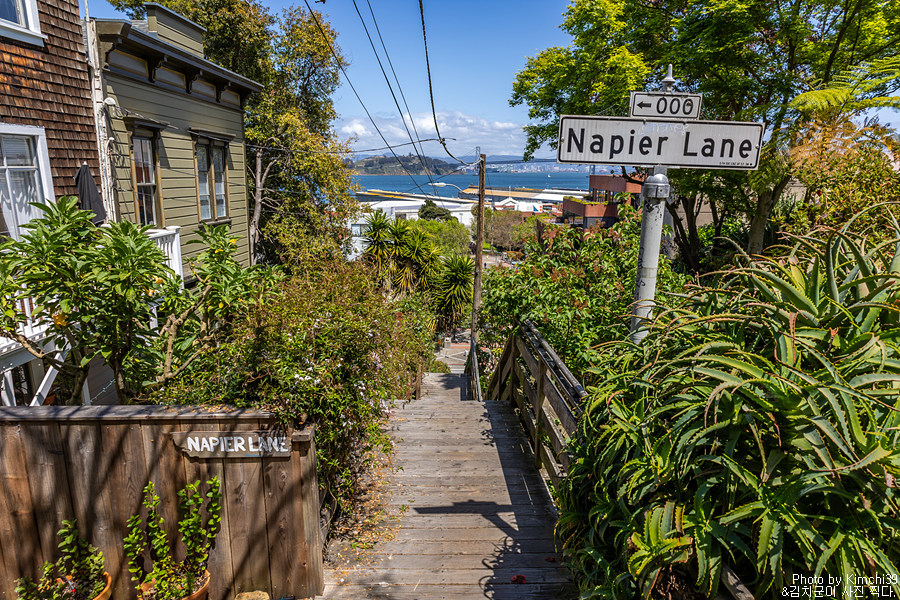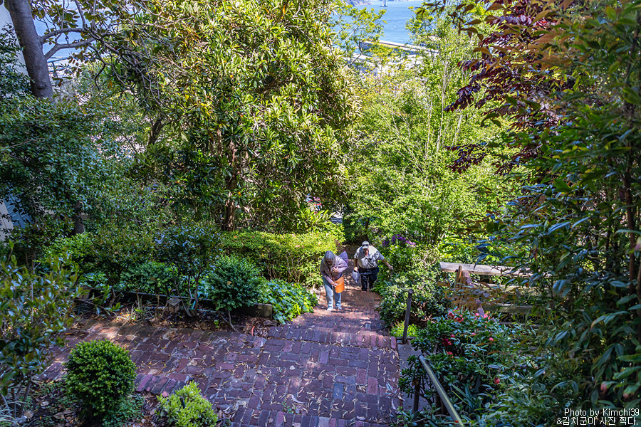 코잇타워에서는 버스를 타고 올라왔던 도로쪽이 아니라, 계단을 통해서 피어19쪽으로 걸어 내려갈 수 있다. 보통 사람들이 코잇타워를 버스로 오지 않으면 이 루트를 통해서 올라오게 된다. 크게 그리니치 스텝스(Greenwich Steps)와 필버트 스텝스(Filbert Steps)가 있는데, 어느쪽으로 가도 무방하다. 나는 필버트스텝스 쪽으로 내려가는 것을 택했다.