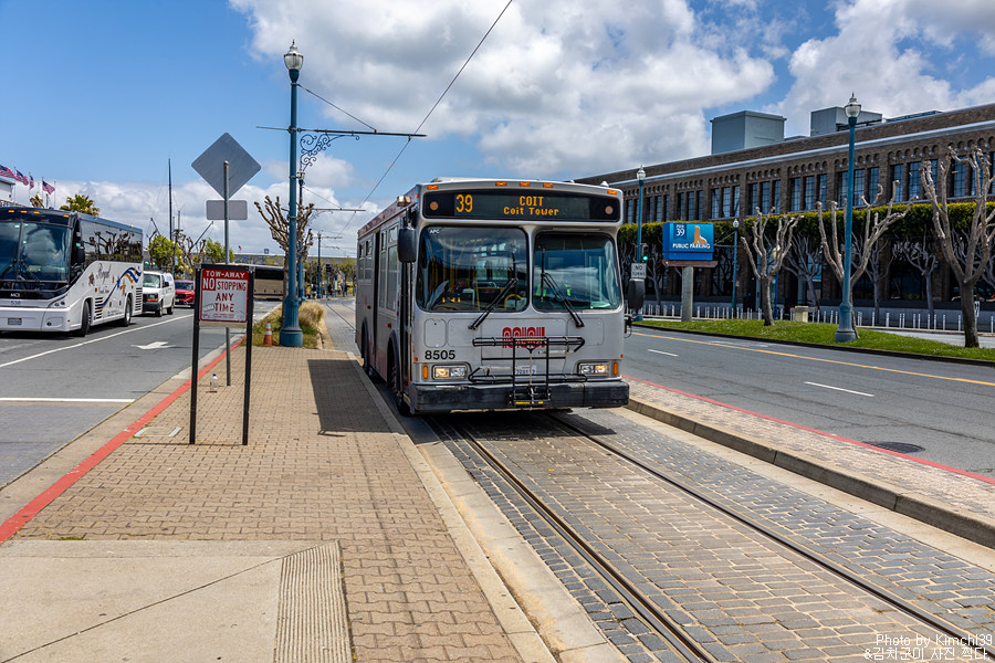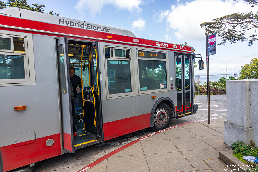 피어39는 어제 둘러봤기 때문에, 오늘은 피어39 앞에서 39번 버스를 타고 코잇타워(Coit Tower)로 향하기로 했다. 언덕위에 위치한 작은 전망대로, 샌프란시스코의 전경을 내려다 볼 수 있는 명소다. 뮤니패스가 있다면 버스로 쉽게 갈 수 있기 때문에, 샌프란시스코 여행 일정을 계획할 때 방문하기에 좋은 곳이다.
