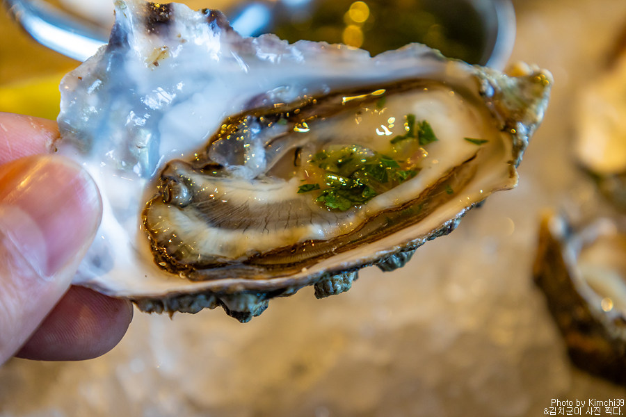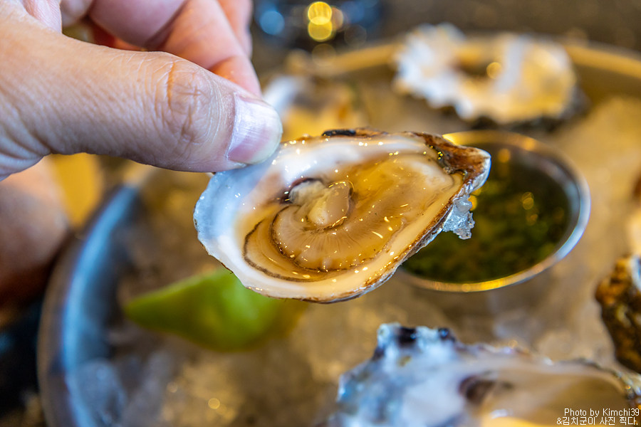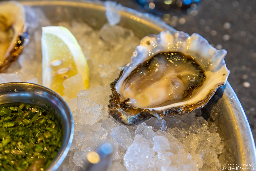 각기 달랐던 굴 종류. 초장이 땡겼지만, 레몬과 자체 소스만으로 먹었다. 아, 6개는 너무 감질나는 맛. 그냥 12개를 시켰어야 했나 싶다.