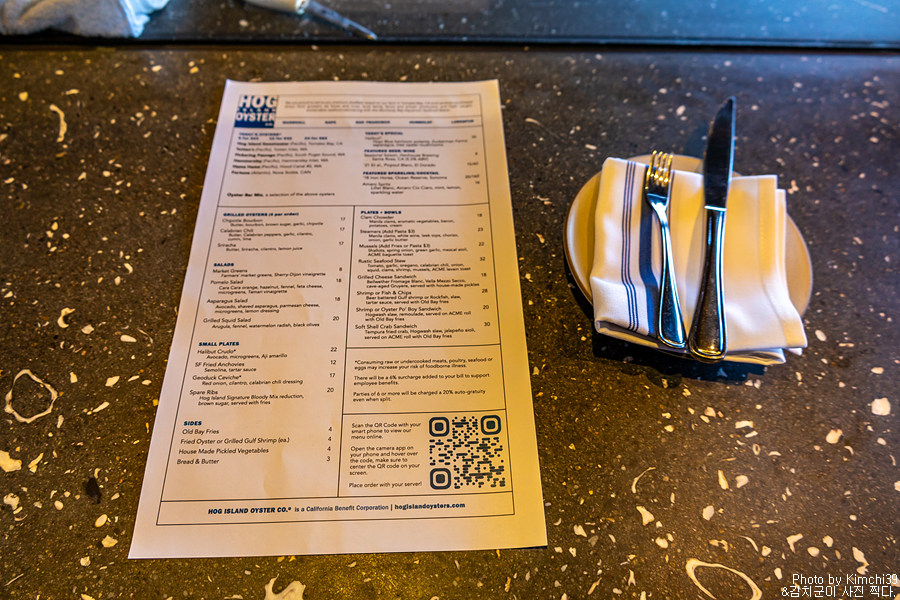 조금 이른 저녁은 페리빌딩에 위치한 호그 아일랜드 오이스터(Hog Island Oyster Co)에서 했다. 한국사람들이 맛있다고 평을 많이 해서, 가 보기로 했다. 블로그의 평은 그리 잘 믿는 편은 아니지만.. 그래도 뭐 어차피 굴은 좋아하니까.