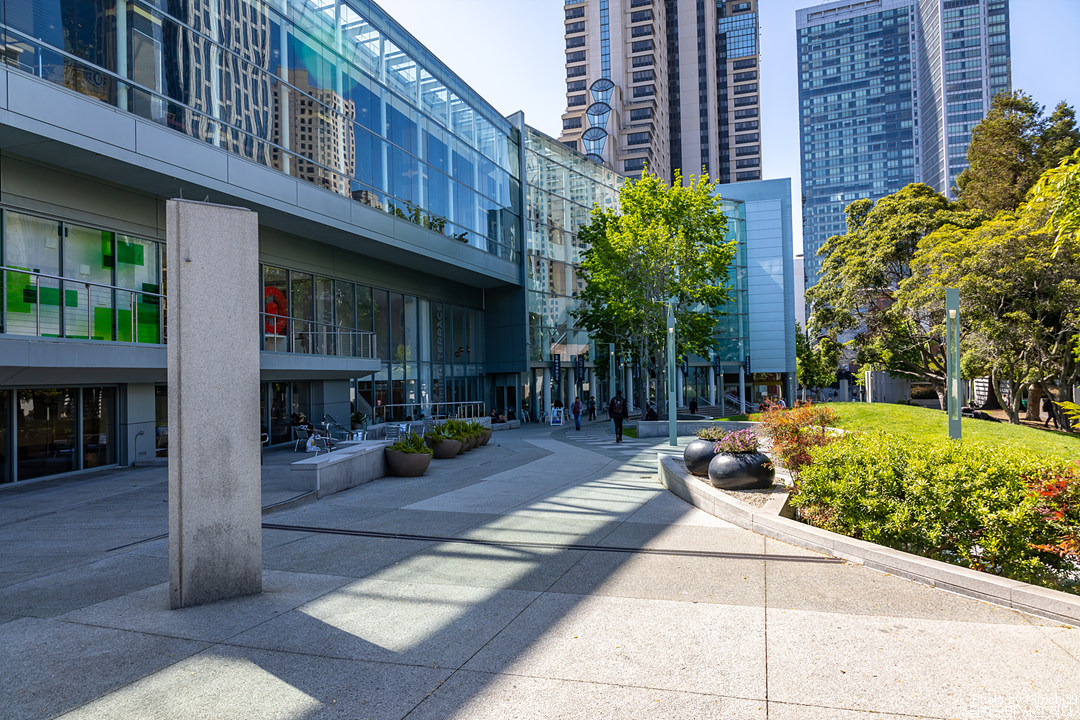 그렇게 모마에서 잠시 시간을 보낸 후, 나와서 건너편의 예르바 부에나 가든스(Yerba Buena Gardens)를 걸었다. 평일 오후의 조용한 가든이었지만, 그래도 잔디 곳곳에 누워서 휴식을 취하는 사람들이 많았다.