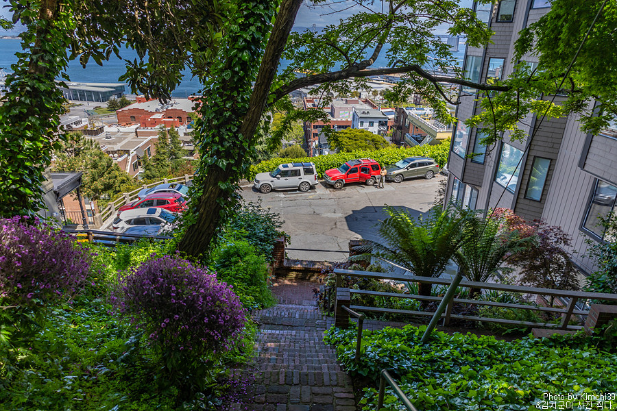 마지막 계단들. 이미 코잇타워에서 풍경을 보고 내려오는 것이기 때문에, 딱히 우와! 하는 풍경은 아니었지만, 그래도 나름 상쾌하게 걸을 수 있었다. 왜 구글 지도 평점이 좋은지는 잘 이해가 안가긴 했지만.