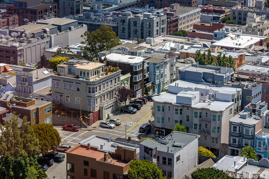 코잇타워에서 멀리 보는 풍경도 좋지만, 코잇타워 아래의 텔레그래프힐 풍경도 생각보다 재미있따. 곳곳에 높은 경사도가 있는 언덕이 있는 풍경, 코잇타워의 주차장 등도 나름 재미있는 사진 포인트가 되기 때문이다. 그렇게 코잇타워에서 여러방향을 돌면서 사진을 찍고, 다시 1층으로 내려왔다.