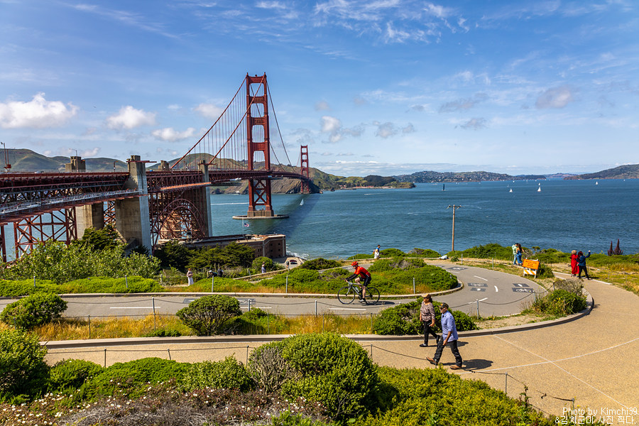 금문교 웰컴센터를 끼고 조금만 돌면 바로 금문교를 조망할 수 있는 포인트가 나온다. 산책로를 따라 원형으로 돌 수 있는데, 웰컴센터 오른쪽 길로 가거나, 아니면 라운드하우스 카페쪽 방향부터 가도 무방하다. 어느쪽으로 가거나 뷰나 보이는 건 크게 차이가 없다.