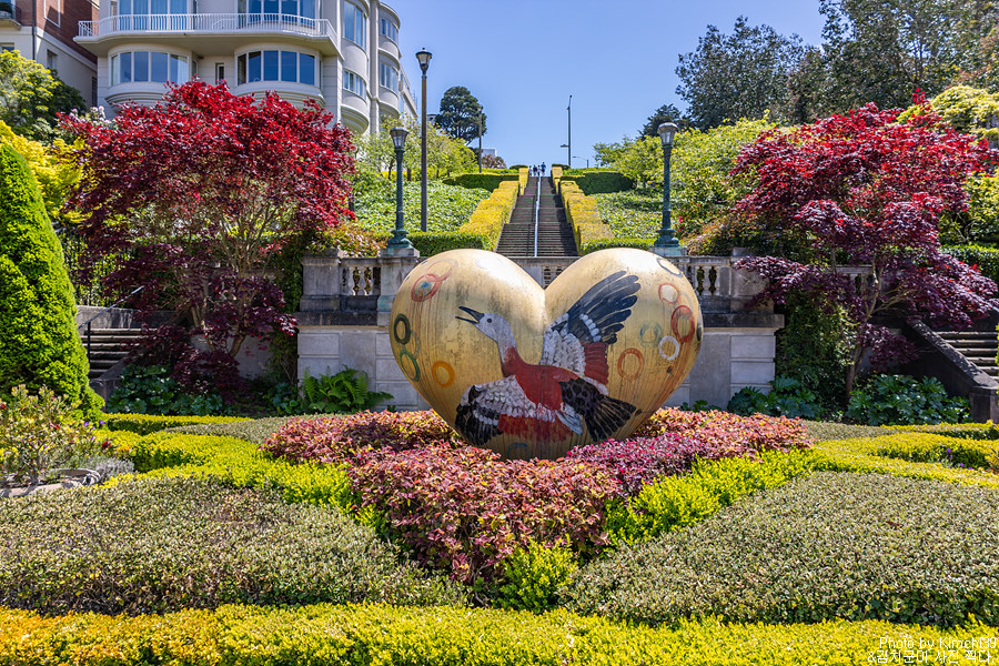 올라가면서 만나게 되는 포디움에서도 샌프란시스코 하트를 만날 수 있었다. 보물찾기를 하는 기분. 이 포디움을 지나서 계단 끝까지 올라가면 샌프란시스코의 풍경이 펼쳐진다.