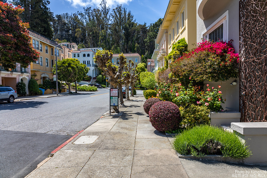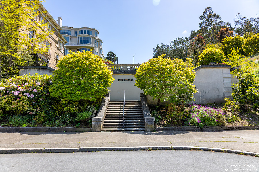 리옹 스트리트 스텝스가 있는 퍼시픽 하이츠(Pacific Heights)는 샌프란시스코의 부촌 중 하나다. 그래서일까, 집들도 훨씬 깔끔하고 보이는 건물들도 확실히 느낌이 달랐다. 이렇게 주거지역에 있는 리옹 스트리트 스텝스를 찾는 이유는, 샌프란시스코에서 나름 멋진 전망을 자랑하는 곳 중 하나이기 때문. 사실, 렌터카가 있다면 굳이 이렇게 오지 않고, Lyon St & Broadway가 만나는 지점에 잠시 주차를 하고 풍경을 보고 가도 무방하다.