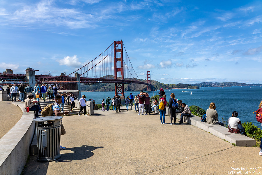 금문교 웰컴센터를 끼고 조금만 돌면 바로 금문교를 조망할 수 있는 포인트가 나온다. 산책로를 따라 원형으로 돌 수 있는데, 웰컴센터 오른쪽 길로 가거나, 아니면 라운드하우스 카페쪽 방향부터 가도 무방하다. 어느쪽으로 가거나 뷰나 보이는 건 크게 차이가 없다.