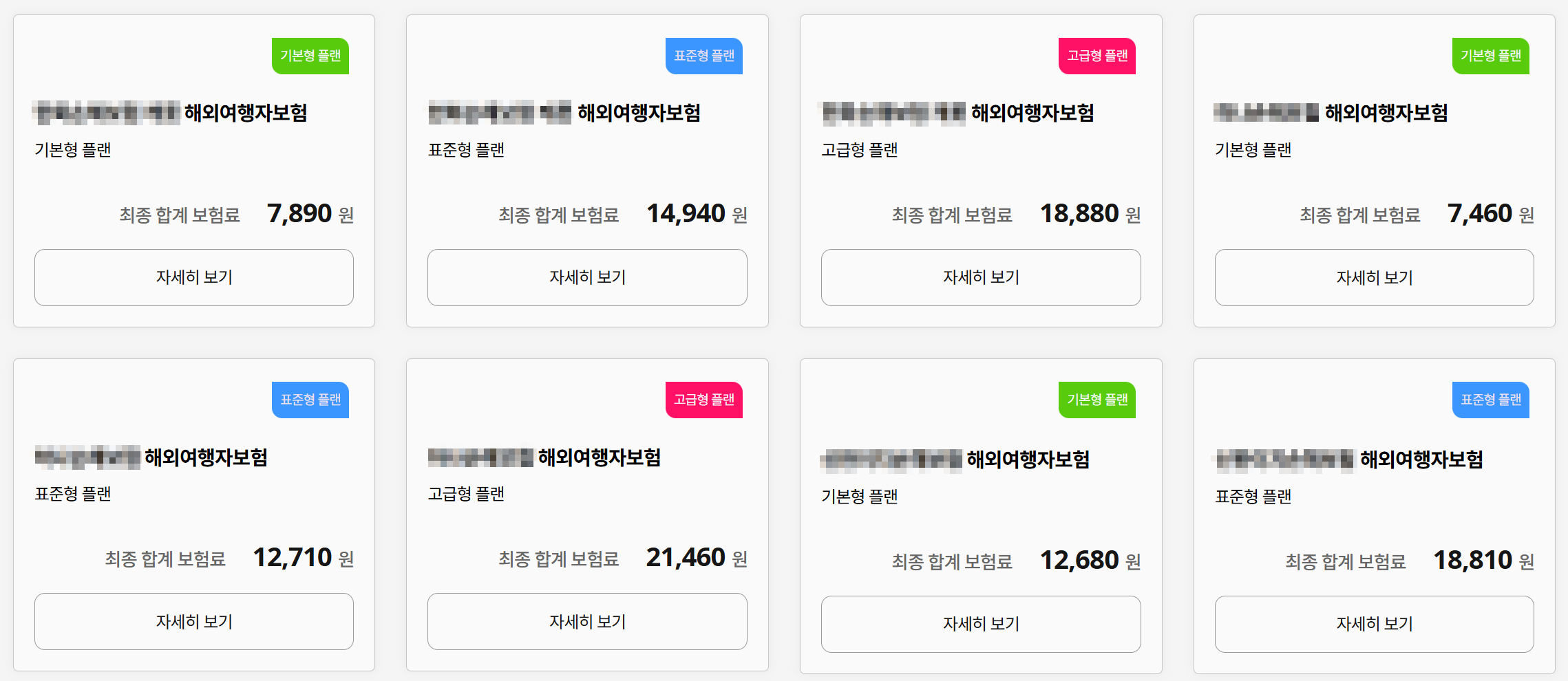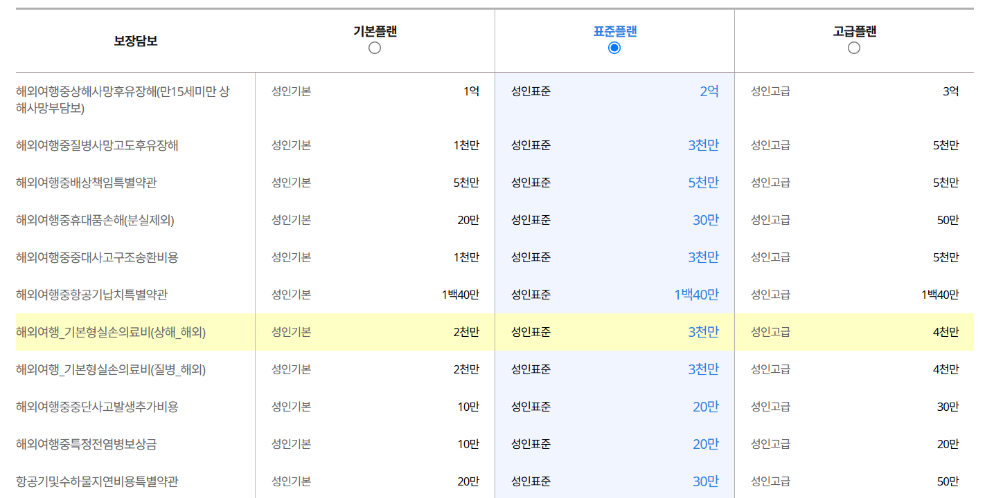 보험은 기본적으로 기본형 플랜, 표중형 플랜, 고급형 플랜으로 구분되기는 하는데, 같은 플랜이라고 하더라도 보험사마다 보장을 하는 비용이 천차만별이기 때문에 상세 보험 내역을 보고 결정하는 것이 좋다.