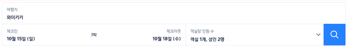 트립닷컴은 하와이 뿐만 아니라 많은 주요 여행지에서 가격이 가장 저렴한 경우가 많다. 체인 호텔의 경우 '최저가 보장제'를 운영하는 만큼 공식 홈페이지에서 예약하는 것이 가장 저렴하다는 것이 중론이지만, 최저가를 인정해주는 조건이 있다보니 트립닷컴과 같은 곳이 더 저렴하게 나오는 경우가 많다. 트립닷컴의 경우 '회원가입을 해야만' 최저가를 볼 수 있는데, 최근 고객분들의 예약을 해 드리다보면 트립닷컴의 요금이 여행사 시스템의 요금보다 더 저렴하게 나오는 경우가 상당히 많았다. 아래 예시에서는 10월 15일부터 3박을 검색해 보았다.