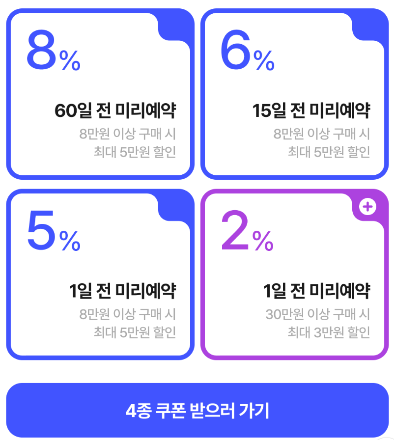 그 외에도 금액에 따라 할인율이 달라지는 여러 얼리버드 할인과 해외 투어 티켓 할인 쿠폰들이 있기 때문에, 사람들이 많이 이용하는 호텔과 투어일수록 좋은 할인율을 기대하는것이 가능하다.